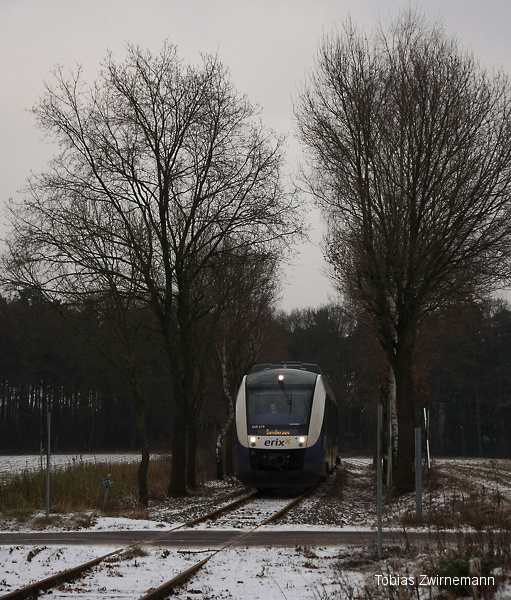 - Bahnhof, Benzen, Böhmetalbahn, Erixx, Hollige, Nikolaus, Sonderfahrt, Verden-Walsroder Eisenbahn, VWE, Winter