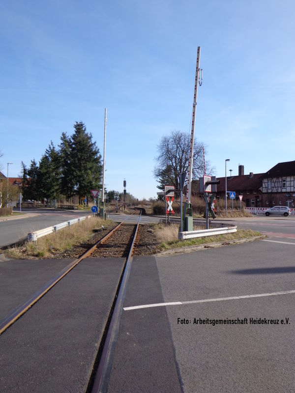 Blick vom BÜ Bahnhofstraße zum alten Bahnsteig in Richtung Beckedorf/Celle.